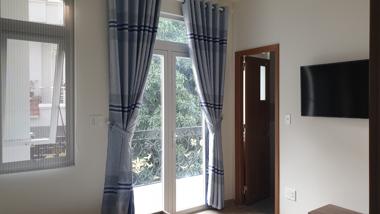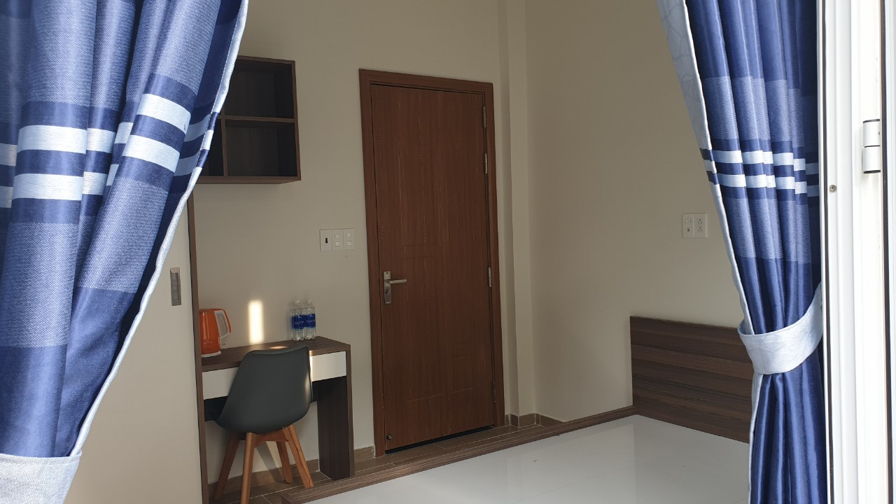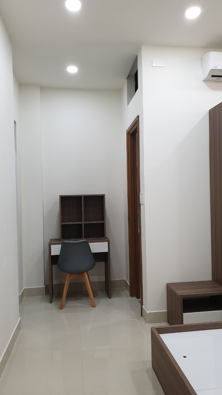 Trang bị: Máy lạnh Toshiba, đèn LED, kệ để giầy, WC riêng đầy đủ thiết bị nhà tắm, Giường, Tủ, Bàn, Ghế, Kệ sách.